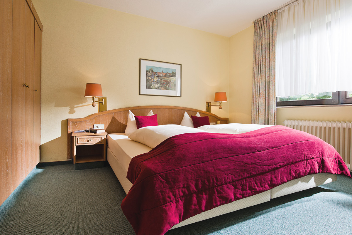 All rooms offer terrific views over the hilly green forests of the Volcanic Eifel. They combine use of the hotel's wellness and fitness area with the possibility of retreating into one's own small haven of tranquillity. For those who want more space, we recommend our Comfort rooms "snorer". With these, you can also expect a separate bedroom.