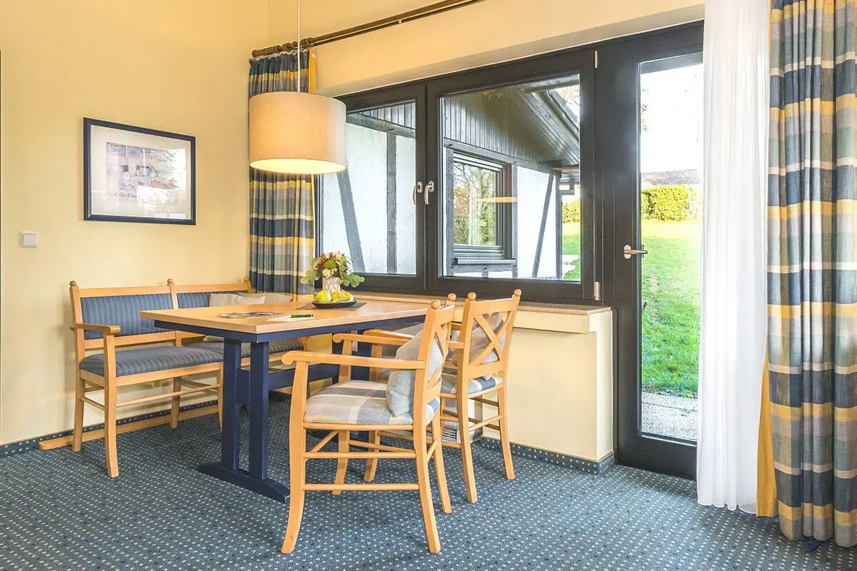 Urlaub mit Familie oder Freunden – in unseren Ferienhäusern ist viel Platz fürs Zusammensein, gemeinsam Kochen und die Natur genießen. Aber jeder wünscht sich auch private Rückzugsmöglichkeiten. Da trifft es sich gut, dass unsere Häuser über zwei Schlafzimmer verfügen. Die großen Ferienhäuser sogar über einen weiteren Schlafbereich mit Badezimmer – ganz nach Ihrem Bedarf. Verteilt über die Hotelanlage fügen die Häuser sich wie gemalt in die grüne Eifellandschaft ein. Hier sind Sie unter sich, ohne auf die Annehmlichkeiten eines Hotels zu verzichten: vom Schwimmbad und Fitnessbereich über eine Baby- und Kinderausstattung bis zum morgendlichen Brötchenservice. Hier finden Sie ausreichend Raum für Ihre ganz persönliche Idee von Urlaub – übrigens auch mit Ihren Haustieren.